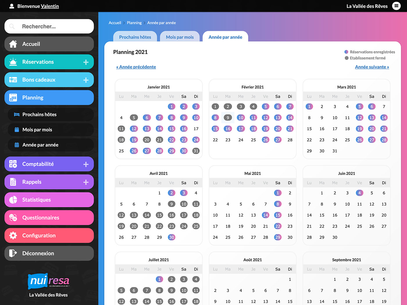 Gérer votre établissement en quelques clics seulement avec nuit-resa, accessible sur ordinateurs, tablettes, smartphones. Notre service est sécurisé, rapide et intuitif, avec des sauvegardes régulières.